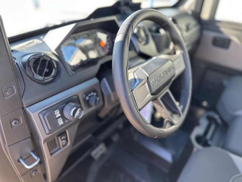 • Industry's Most Spacious Cab: We’ve increased interior space with 2” more leg room than our other full-size UTVs, plus easier entry and exit for tasks like working fence lines. Adjustable seating and a telescopic steering wheel let you find the perfect fit for your height and riding preferences.