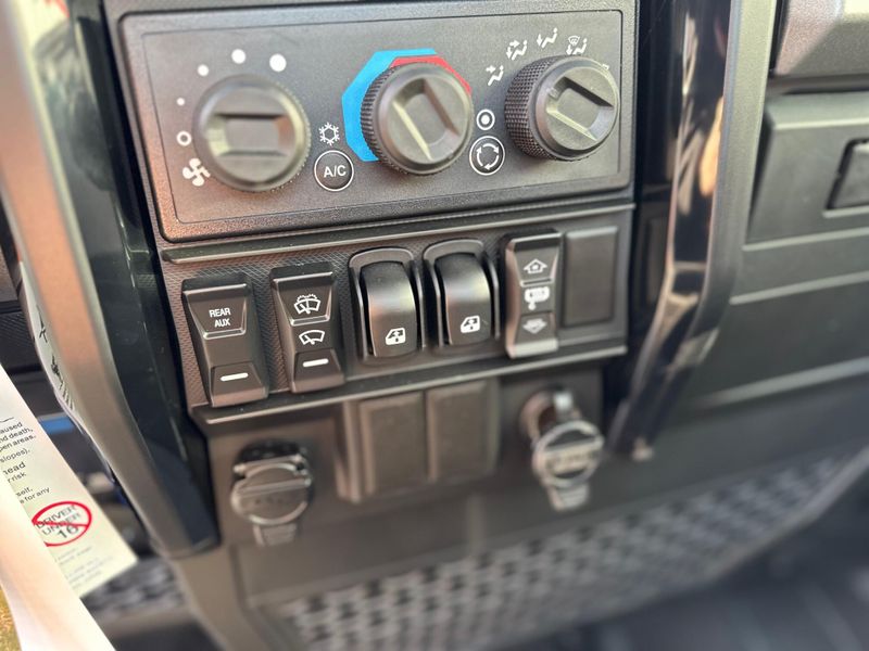 • Lighting: LED headlights with LED taillights, LED rear work light, LED dome light, door puddle lighting, front LED auxiliary lights, interior accent lighting, lighting modes: low, high, accent, blackout. Blackout mode switches off the headlights and dims interior lighting