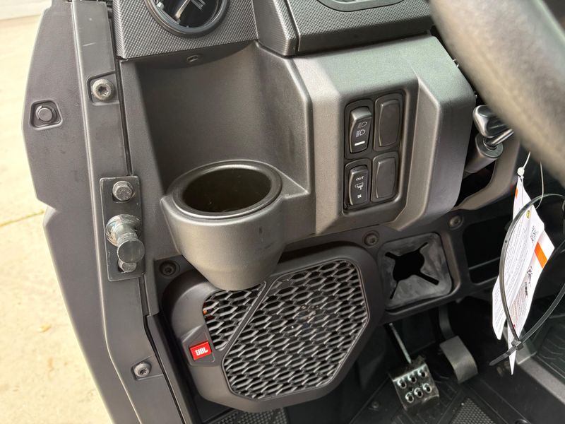 • COMFORT: • Protection From The Elements: The factory-installed cab system - including a tip-out windshield and powered front windows - keep you comfortably riding in rainy, snowy or dusty conditions. • Control Your Climate: Factory-installed heating and air conditioning lets you control the climate for all-season comfort. For quick relief on hot days, a variable AC compressor automatically varies its pumping capacity to deliver faster cooling and lower temperatures, even when at idle and low engine RPMs. • Ride Command: Unlock integrated RIDE COMMAND technology in your vehicle’s display, with the most sophisticated off-road GPS navigation system and feature set. Communicate, tune into your machine and stay prepared for whatever the day brings. Plus, use the factory-installed rear camera to confidently reverse. Available on NorthStar Ultimate. • Immersive Sound: Standard with the Ultimate trim, integrated JBL® audio speakers deliver precise audio clarity and premium sound. Run AM/FM radio or connect to Bluetooth via the RIDE COMMAND infotainment system.